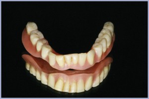 L’arcata inferiore viene resa edentula e protesizzata con una protesi mobile totale post-estrattiva per mantenere al meglio l’occlusione abituale e l’estetica (Figg. 2, 3).