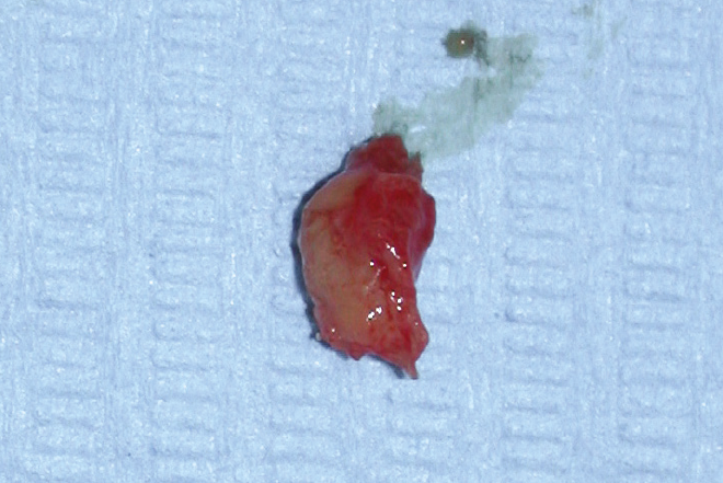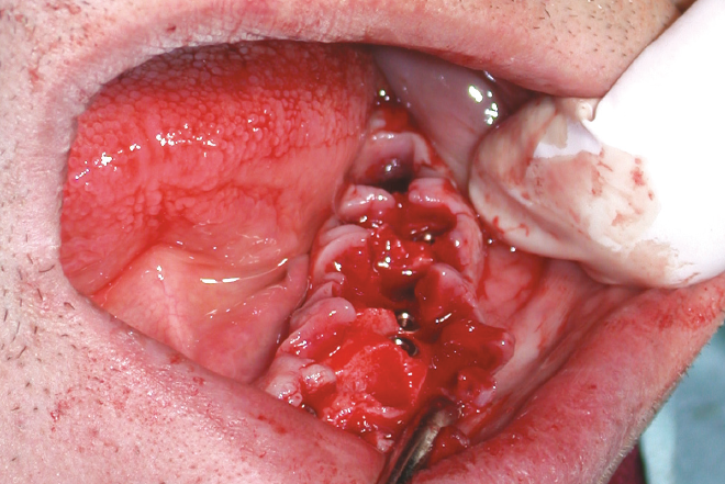 Durante l’intervento veniva eseguita exeresi chirurgica di cisti residua del mascellare superiore (Figg. 3-22).