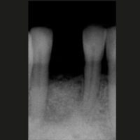 - Fig. 1 – Agenesia degli incisivi laterali superiori. L’immagine bidimensionale dell’ortopanoramica dopo il trattamento ortodontico mostra che lo spazio disponibile per l’inserimento di impianti è molto piccolo
