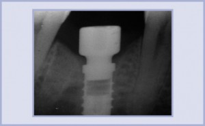 La tecnica chirurgica monofase, qualora possibile, permette una minore perdita ossea complessiva a livello coronale; negli impianti Exacone® si evidenzia a volte, addirittura, una certa crescita ossea intorno al collo della fixture, come in questo caso (figg. 9-11). Vista la qualità di osso rilevata in fase chirurgica abbiamo preferito aspettare 6 mesi prima di protesizzare l’impianto. Dopo aver preso l’impronta (figg. 12-14), abbiamo preparato il moncone in laboratorio, verificandone poi la congruità in bocca (figg. 15-21).