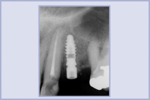 Impianto diametro 4,5 mm post-estrattivo immediato in sede 24, in tecnica monofasica, con inserimento di bioinnesto nel gap impianto-alveolo (Figg. 22-28).