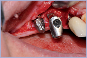 - Fig. 3 – Inserimento di impianto Exacone® Max Stability Ø 4,5 mm in tecnica flapless