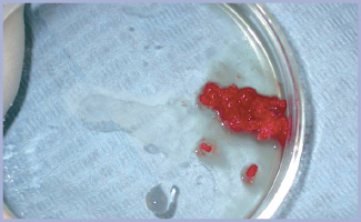 Durante la preparazione del sito implantare si recuperano dei microchips di osso autologo (fig. 4).