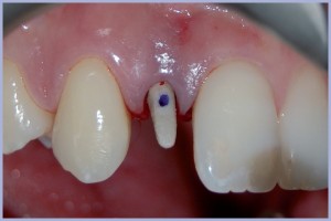 Quando ci torna il lavoro definitivo dal laboratorio, rimuoviamo il moncone temporaneo (Figg. 48, 49) ed effettuiamo una prova in bocca.