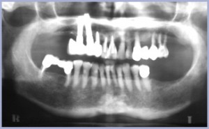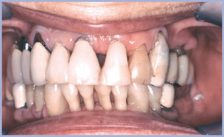 Paziente di sesso femminile di anni 74, affetta da parodontopatia cronica a lenta evoluzione che presenta marcata atrofia delle selle (figg. 1-3). La protesi al 2° quadrante data da oltre 20 anni e non risulta più adeguata alla funzione masticatoria per estrema mobilità sotto carico (fig. 4).