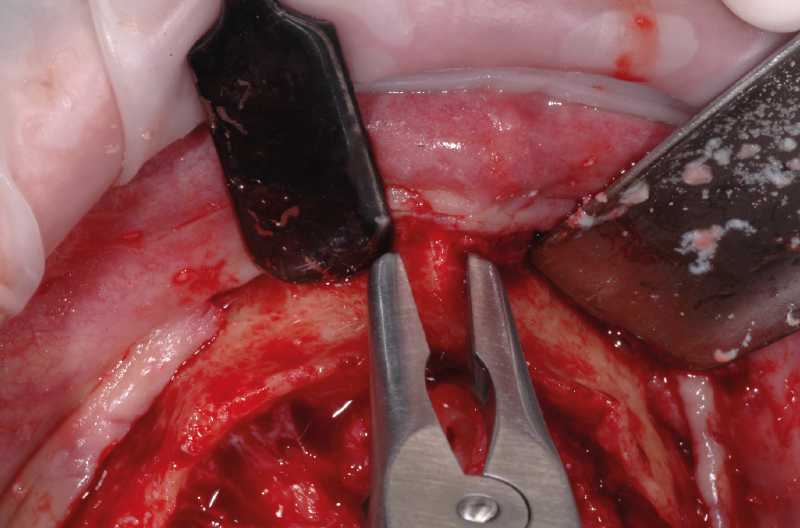 – incisione a spessore parziale della mucosa con bisturi al fine di ottenere tessuto mucoso per chiudere per prima intenzione. Il lembo deve essere completamente passivo, non ci devono essere tensioni di nessun tipo, perché una deiscenza può creare infezione e una perdita dell’innesto;