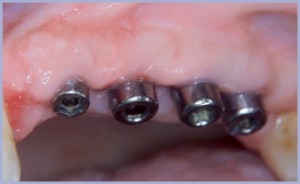 Venivano dunque posizionati quattro impianti, di cui il primo di 3,3mm di diametro e 12 mm di lunghezza nella zona 23 e gli altri tre di 4,1 mm di diametro e 10 mm di lunghezza nelle rimanenti zone (24, 25, 26) (figg. 8, 9).